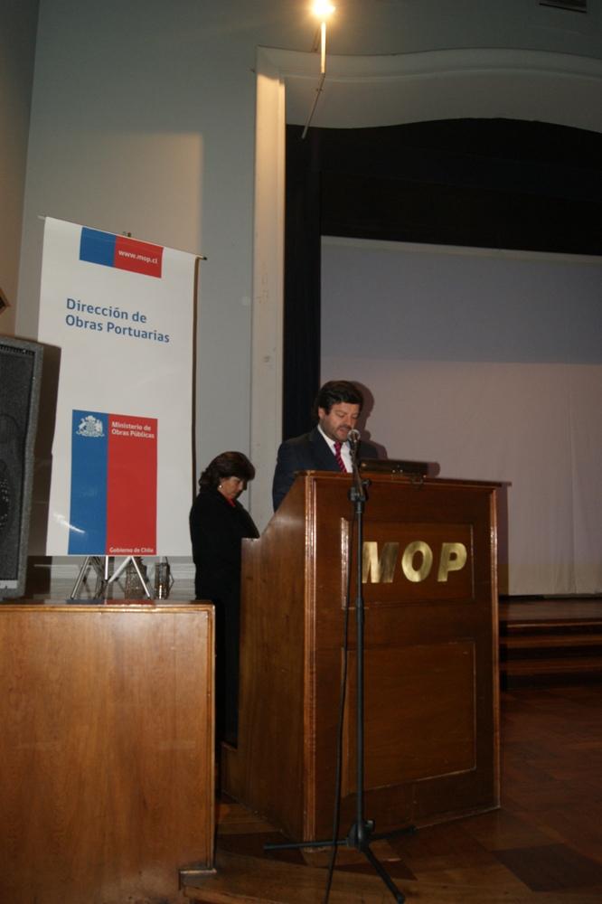 En el auditorio del Ministerio de Obras Públicas se reunieron diversos actores encargados del desarrollo de obras a lo largo del borde costero del país, para informarse sobre el nuevo enfoque en las infraestructuras que se generan en el borde costero y las problemáticas e impacto que podemos enfrentar como país frente fenómenos naturales. La iniciativa fue organizada por la Dirección de Obras Portuarias del MOP, en conmemoración a su aniversario número 58, con la finalidad de informar a la ciudadanía sobre los nuevos proyectos de infraestructura que se están desarrollando. La primera presentación desarrollada por el Profesional Javier Castro quien es Jefe de la Sección de Borde Costero y Arquitectura de la Dirección, estuvo enfocada en identificar el avance que ha tenido la institución en el desarrollo de obras que responden a la necesidades de las personas y también a la historia local en la cual se desarrollan, como es el caso del Borde Costero de Dichato; donde además presentó un Video de la primera etapa que se va a desarrollar en esa localidad. Junto con destacar el desarrollo de la Dirección en sus distintas áreas Castro, destacó que “hoy la dirección junto a sus prioridades de construir obras en las costas del país, agregó el contexto seguridad y que en el caso de Dichato se pensó en un muro y un parque para mitigar los efectos de un posible tsunami y en el caso de la Poza de Talcahuano elevamos la cota de construcción, también para mitigar el efecto de las aguas, donde la inversión para este año y el próximo es sobre los 6.400 millones de pesos”. Desde la Mirada Global y académica el geógrafo Marcelo Lagos expuso una de sus últimas investigaciones que tuvo relación con el maremoto y posterior Tsunami de Japón desarrollando un análisis sobre el impacto y que provocó este movimiento telúrico en términos geográficos y sobre cuál es la mirada que debemos tener como Ministerio sobre el desarrollo de estos acontecimientos naturales. Finalmente intervino el Director Nacional de Obras Portuarias Ricardo Tejada Curti, quien manifestó el avance de la Dirección de Obras Portuarias en términos de financiamiento y desarrollo de obras, destacando que gran parte de las infraestructura costera tanto de trabajo, conectividad y de recreación tiene como finalidad principal invitar a la ciudadanía a mirar hacia el mar” Tejada destacó que el año 2008 teníamos una inversión no superior a los 14 mil millones de pesos, mientras que este año superamos 40 mil millones de inversión lo cual nos motiva seguir trabajando para mejorar la calidad de vida de las personas y también el desarrollo comercial del país”. En total desde su reconocimiento institucional en el año 1957 la Dirección de Obras Portuarias celebra 58 años, sin embargo el Ministerio de obras públicas inició su programa de desarrollo de obras portuarias en el año 1910 con los puertos de Valparaíso y San Antonio.