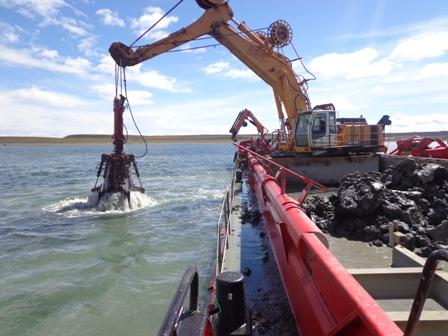 Luego de finalizar las faenas de dragado iniciadas a finales del año 2013, sólo queda la aprobación por parte del SHOA en cuanto a corroborar las profundidades logradas con la extracción del sedimento por parte de la empresa de Dragado que realizó los trabajos. En ese contexto según el último informe entregado por la empresa que realizó los trabajos, el volumen dragado o extracción de sedimento del fondo marino fue de aproximadamente 48.474,2 m3, lo cual permitiría alcanzar la cota -.3.5 mNRS, profundidad necesaria para mejorar el track de navegación de las naves que circular por este sector. Por su parte el Director Regional de Obras Portuarias, José Suazo, destacó que si bien la obra ya está concluida en cuanto a los trabajos de extracción sólo falta la aprobación de Servicio Hidrográfico y Oceanográfico de la Armada, instancia que está contemplada dentro del contrato”. Asimismo durante el desarrollo de las faenas se realizaron batimetrías de control para verificar el avance de la faenas y de este modo controlar el impacto de los trabajos en el fondo marino, para así controlar las profundidades requeridas.